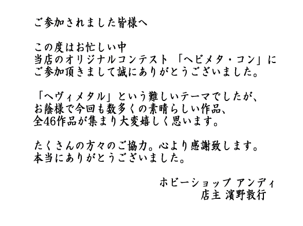 | ・スケール・メタル部門 優秀賞 / 総合獲得ポイント"第2位" |