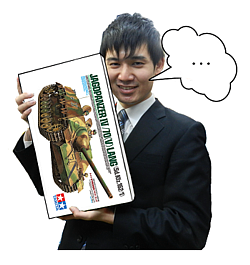 毎年恒例のお客様企画… 2015年の最初は、 ノーマン・谷口氏による、 『ラング・コンペ』です。 昨年末に発売した、 タミヤ製 1/35「ドイツⅣ号駆逐戦車/70(V)ラング」を、 皆さんでサクっと作って展示しましょう♪ というこの企画、 今回はいつもと違って、 ノーマン氏のコメントも頂きました。 心優しいノーマン氏が プロ・アマ問わず、 容赦なく斬るという特典付きですw、 普段は、 仕上られげた作品には マイナスな事は言わないというのが、 当店でのマナーですが… 今回は、事前に皆様の了承済みで、 参加者一人一人に 甘口~激辛まで、ご注文を頂きましたw |